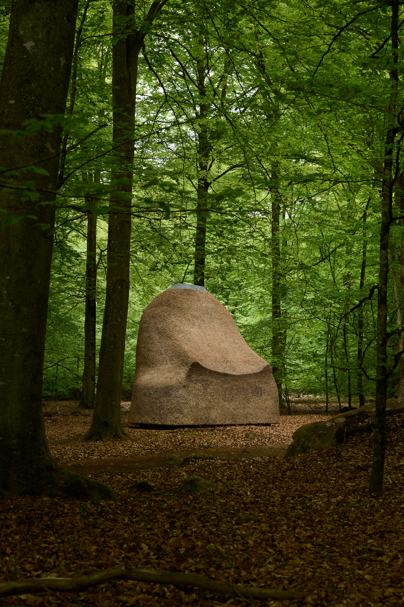 Martin Puryear began working as an artist in the 1970s, when many of his colleagues were working with the reduced, abstract style of minimalism. Beginning with both this artistic direction and handicraft traditions, he developed his own idiom. In his sculptures, Puryear uses natural materials such as metals, stone, grasses, and wood, which he gives abstract, dreamlike forms. Meditation in a Beech Wood is shaped like a headless, seated Buddha figure. He gained the inspiration for the sculpture from Carl Milles’ gilded wood sculpture from 1925 of a seated Gustav Vasa, greeting visitors in the entrance hall of the Nordic Museum in Stockholm. In connection with his project at Wanås, Puryear became interested in the houses with thatched roofs that can be found in Skåne and Denmark. The reeds for Meditation in a Beech Wood come from the lake Tåkern in Östergötland and the sculpture was realized by the roofing expert Adam Ooms.